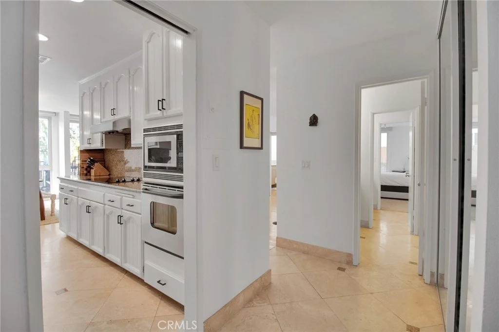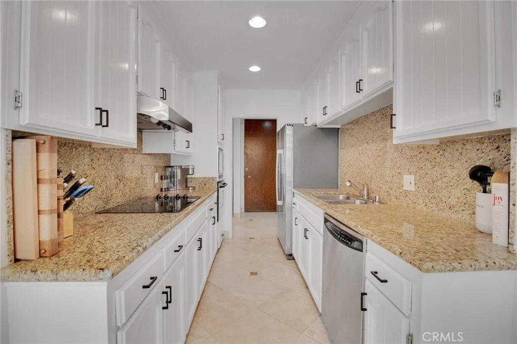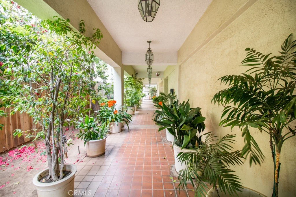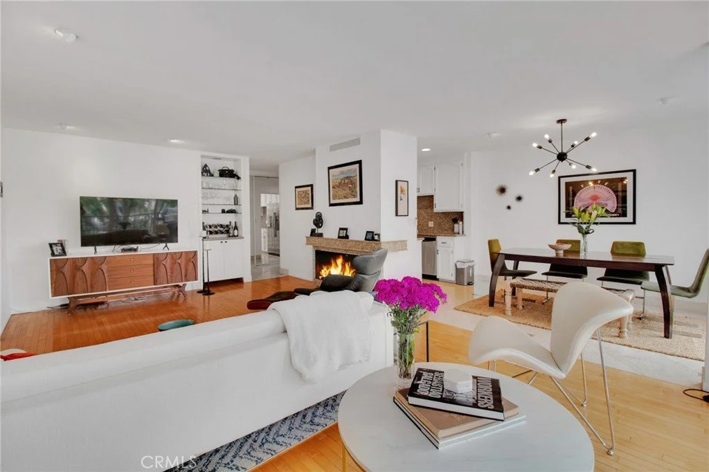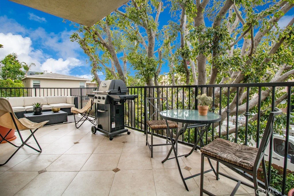 Prime Brentwood location close to coffee bars, restaurants & retail on trendy San Vicente Blvd.! Located within a gated condominium community, this corner unit features two private alfresco patios with ample indoor-outdoor living in this beautiful entertainer's space. The living room features a beautiful granite fireplace, built-in shelving, and sliding glass doors that open to the spacious front patio. The dining area has a custom modern light fixture and tile floors with light pouring in from the floor-to-ceiling glass windows. The galley-style kitchen offers granite countertops and backsplash, cooktop, and stainless-steel appliances. The nice sized primary suite features a walk-in closet, sliding glass doors that open to the back/side patio and an ensuite bathroom with dual vanities and plenty of storage space. The second bedroom is the perfect size and has a bathroom for guests. Enjoy the convenience of new custom Shade Company motor/remote driven window coverings throughout as well as central AC/Heat. Relax or entertain on the private, tiled patio and enjoy the beautiful view to the community pool and spa. Two car parking spots with extra storage. This property offers a hard-to-find combination of stunning space, limitless flexibility, and is located in a prime Brentwood location!